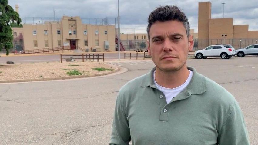 El corresponsal Joe Tidy desde las afueras del centro penitenciario de Englewood en Colorado. (BBC)